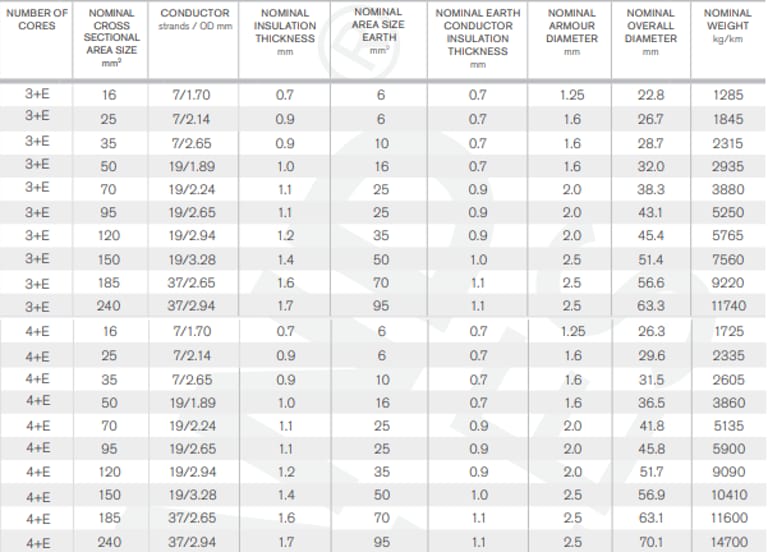 Cable Name | AS/NZS 5000.1 XLPE/SWA/PVC + Earth Armoured Cable 0.6/1kV |