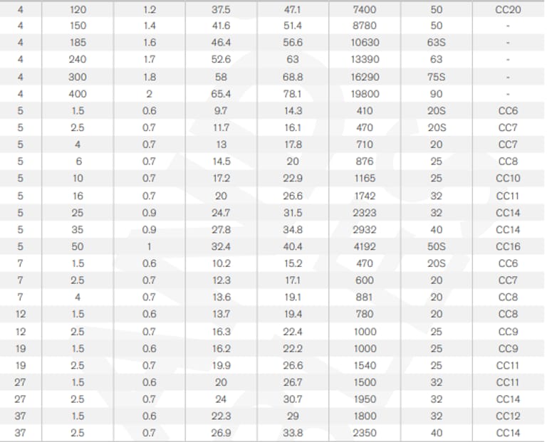 Core Identification | 2 core: Brown Blue3 core: Brown Black Grey3 core (optional): Green/Yellow Blue Brown4 core: Brown Black Blue Grey4 core (optional): Green/Yellow Brown Black Grey5 core: Green/Yellow Brown Blue Black Grey7 core and above: White cores with Black numbers |