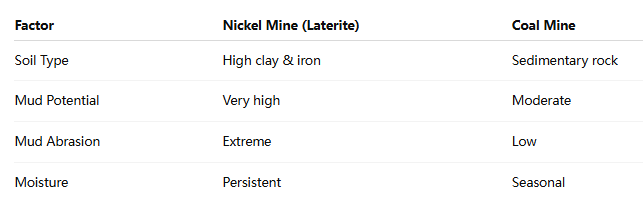 Although both coal mines and nickel mines use flexible cables to support mobile equipment, the environmental conditions in Indonesian nickel mines — especially at the Weda Bay Project — are much harsher than those typically found in coal mines.