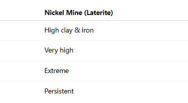 * Laterite nickel geology producing highly muddy abrasive soil