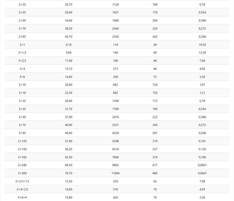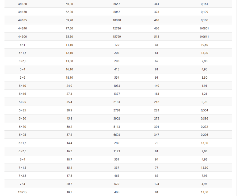 KAPASITAS ARUS: VDE 0298-4 Tabel 11