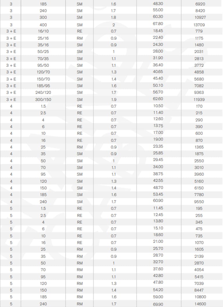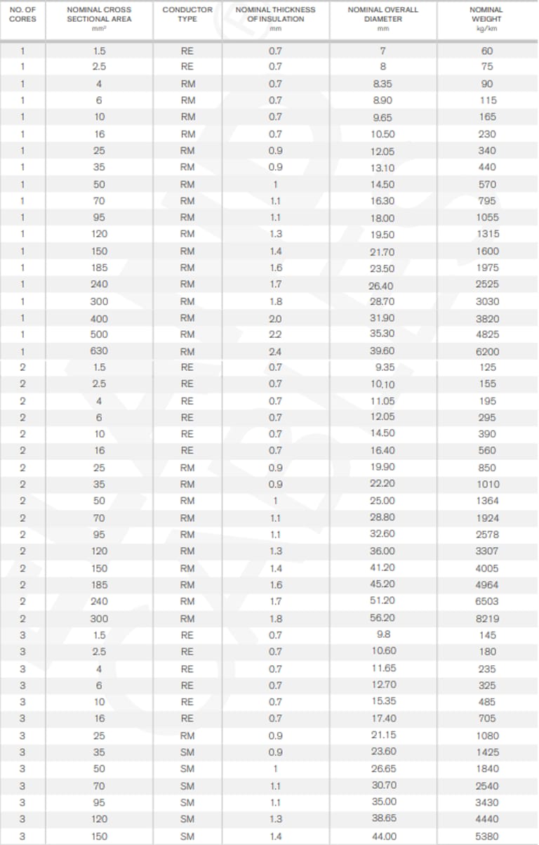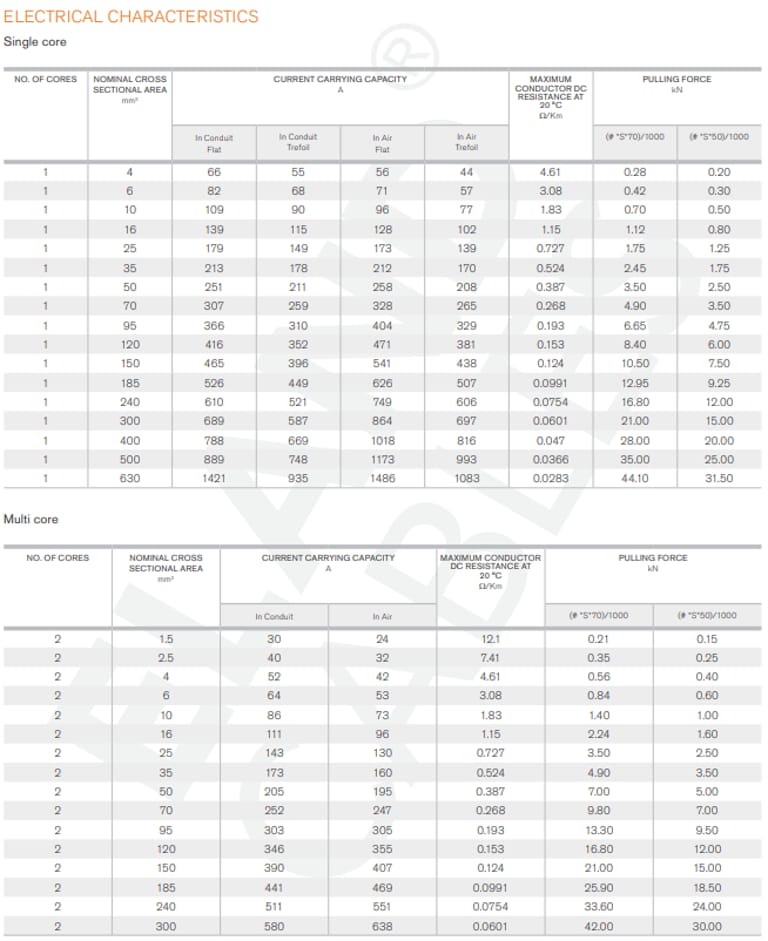 Ya, single core tersedia hingga 630 mm².