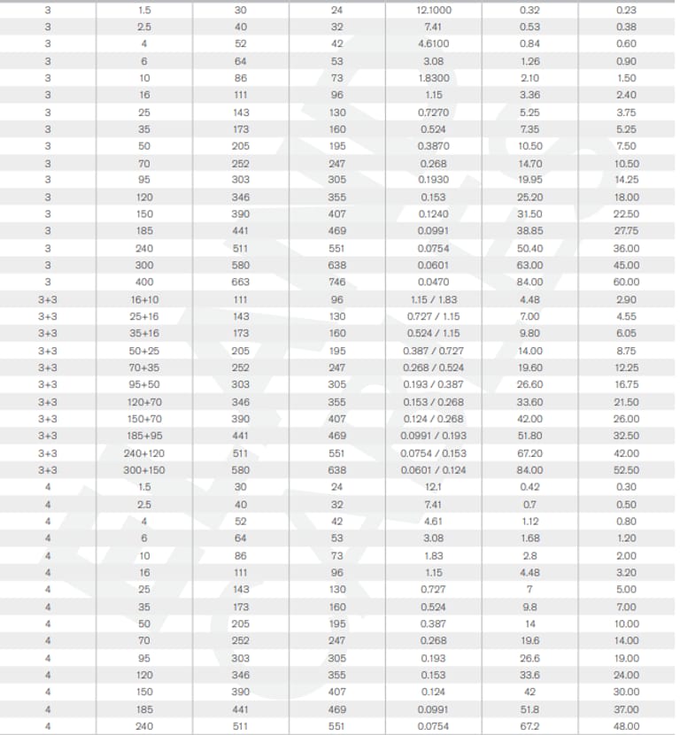 4 inti + pembumian: Hijau/Kuning – Cokelat