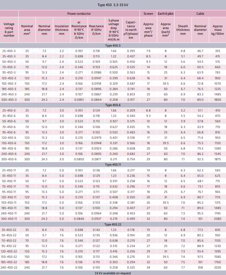 AS/NZS Tipe 450 3.3–33 kV