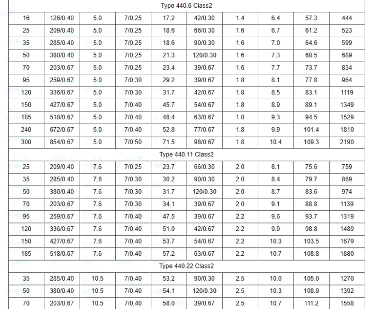 Kabel fleksibel AS/NZS Type 440 adalah kabel feeder dan mesin industri yang dirancang untuk mengalirkan daya listrik dari 1.1 hingga 22 kV. Kabel ini menggunakan isolasi EPR (Ethylene Propylene Rubber) yang tahan panas dan tahan aus, sehingga ideal untuk mesin berat, peralatan industri, dan jaringan feeder fleksibel.