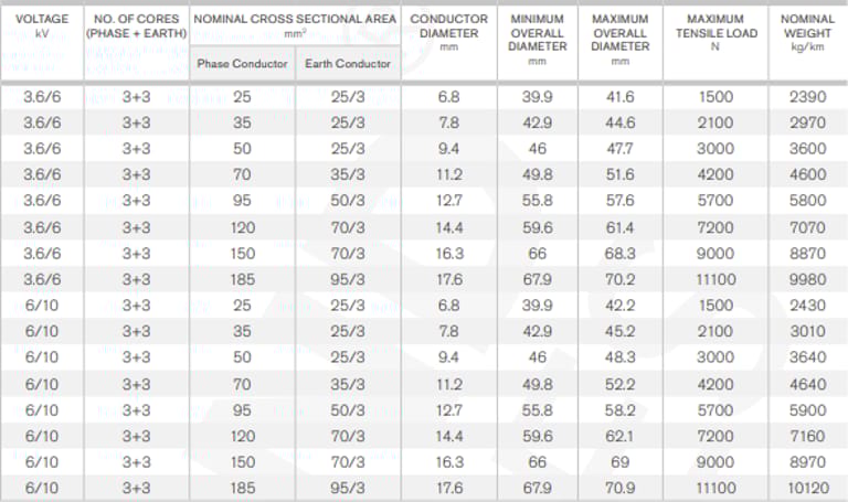 Kabel tersedia dari 25 mm² hingga 185 mm². Pemilihan tergantung pada: