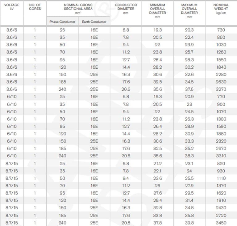 Kabel fleksibel berisolasi karet tegangan menengah (medium voltage), inti tunggal, biasanya digunakan untuk sambungan jarak pendek pada trafo dan switchgear, serta kabel daya pada peralatan tambang dan di sepanjang conveyor belt. Cocok untuk aplikasi di dalam dan luar ruangan.
