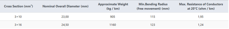 Kabel 3×10 mm² lebih fleksibel dan ringan, cocok untuk operasi polip dengan beban sedang.
