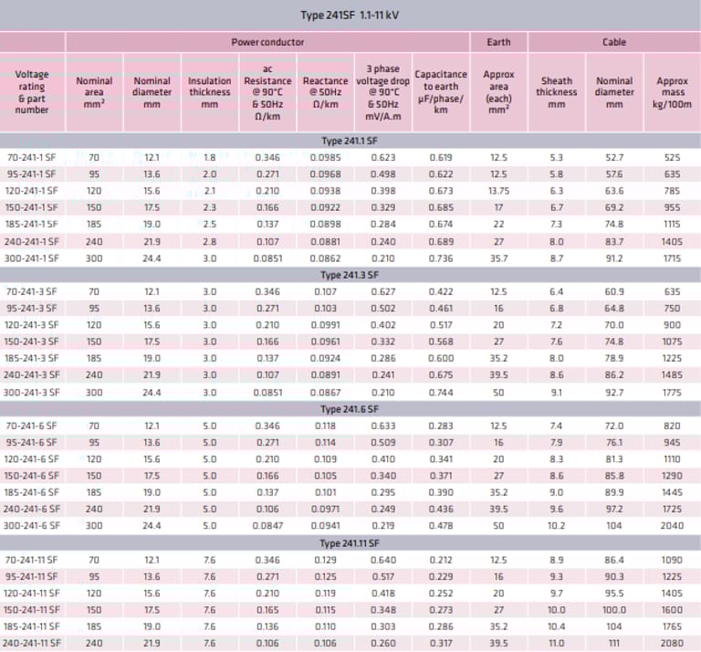 Kabel Type 241SF adalah kabel daya dengan semiconductive screen yang memenuhi standar AS/NZS 1802. Keunggulan utamanya adalah: