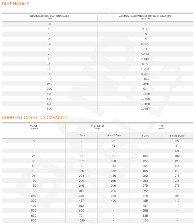 Kedua jenis kabel ini sesuai dengan standar internasional: IEC 60502-1, VDE 0276-603, HD 603, IEC 60228, dan memiliki sifat flame retardant sesuai IEC/EN 60332-1-2.