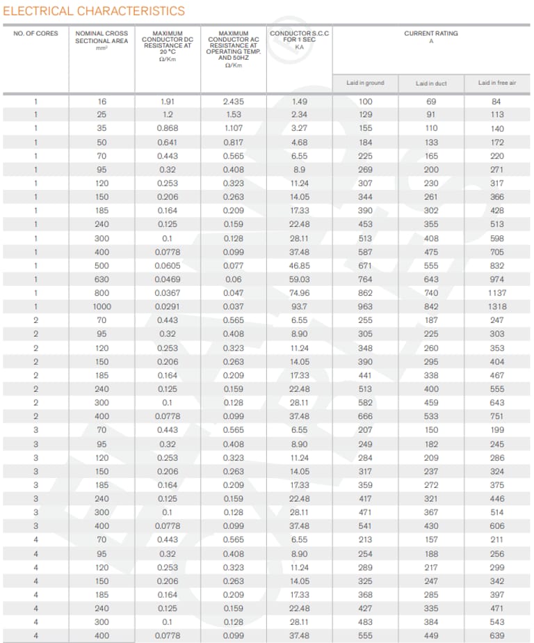 Bentuk khusus: Untuk kabel 3 & 4 core dengan ukuran ≥ 50 mm², konduktor berbentuk sektor untuk meningkatkan kapasitas arus.