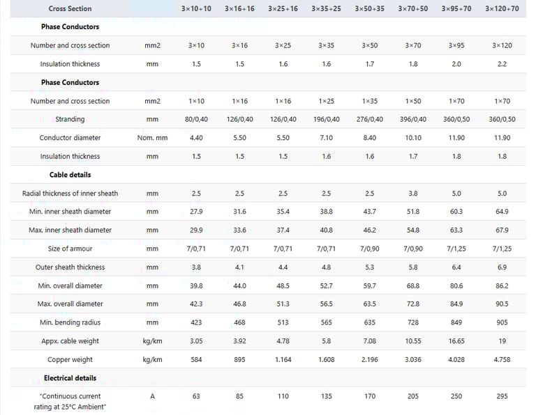 Ketersediaan Ukuran Beragam: Penampang dari 3×10 hingga 3×120 mm² sesuai kebutuhan arus.