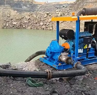 Pertambangan Indonesia menghadapi dua jenis drainase utama: sump pit (kedalaman 50–100 m) dan deep well dewatering (200–500 m). Pompa submersible berkapasitas 75–500 kW beroperasi terus-menerus untuk mencegah banjir yang dapat menghentikan produksi dan menimbulkan risiko keselamatan.