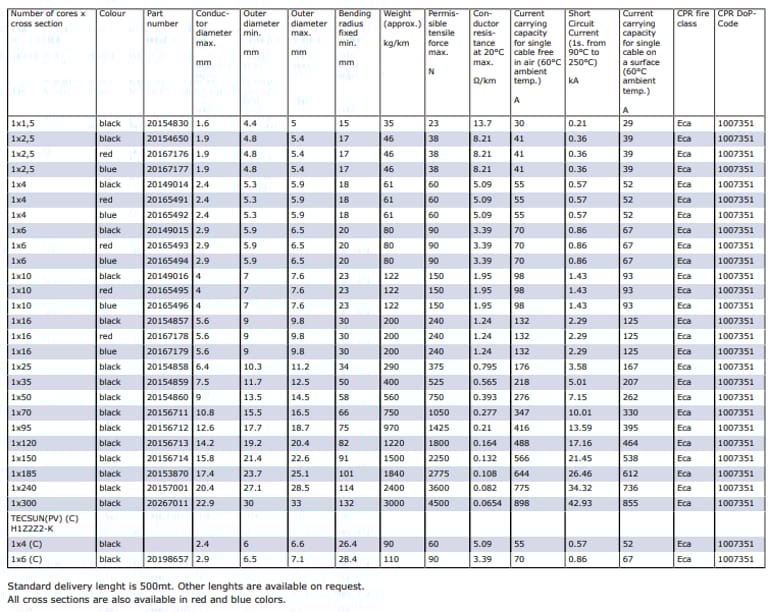 Kabel surya H1Z2Z2-K sesuai EN 50618 dirancang untuk digunakan pada Sistem Penyediaan Tenaga Fotovoltaik dengan tegangan nominal 1,5/1,5 kV DC.