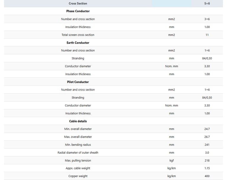 Screen: Tembaga timah / anyaman nilon di atas inti fase. Pilot dan ground core tidak discreening, memberikan perlindungan terhadap gangguan elektromagnetik tanpa menambah kompleksitas.