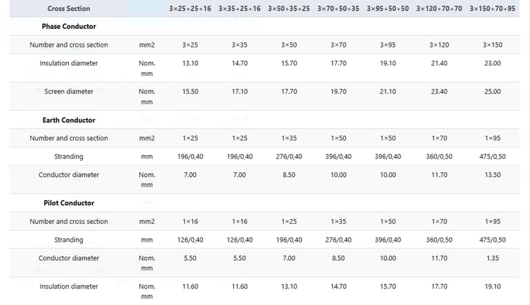 Sebuah kontraktor tambang menggunakan BS 6708 Type 307 3×70+50+35 untuk: