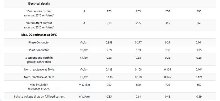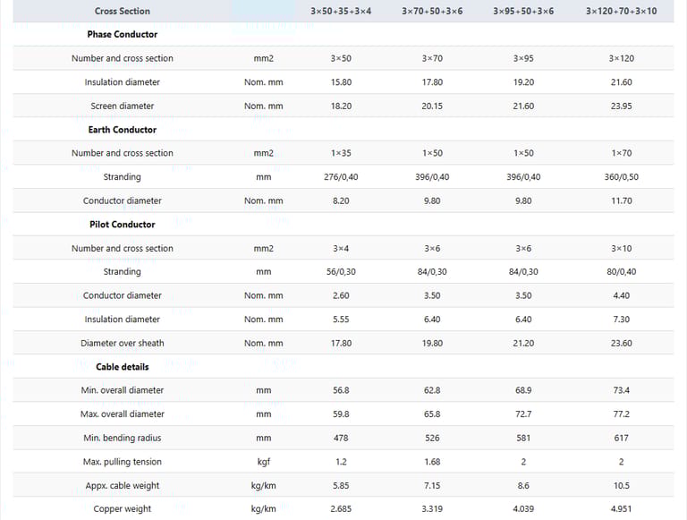 Kabel ini mampu bekerja pada tegangan menengah 1,9/3,3 kV, dengan karakteristik mekanik dan elektrik yang stabil meskipun terkena getaran, tarikan, abrasi, minyak, dan cuaca ekstrem.