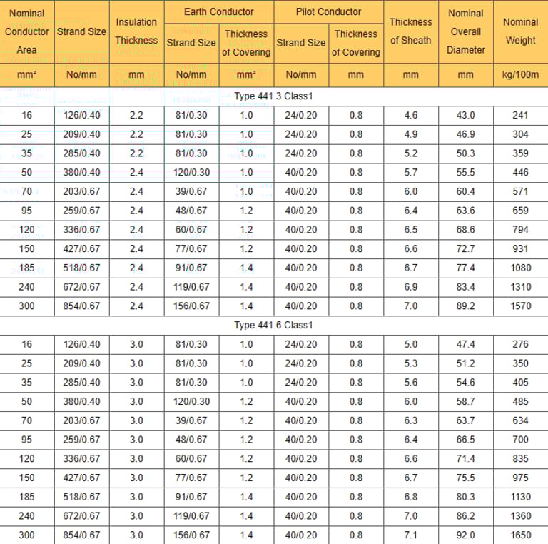Kabel AS/NZS Type 441 Kelas 1 adalah kabel tegangan menengah yang dirancang untuk berbagai aplikasi industri dan pertambangan. Kabel ini memiliki konduktor tembaga fleksibel dengan isolasi EPR, pelindung PCP berat, dan satu pilot pusat yang dapat diperluas. Struktur khusus ini membantu mengurangi risiko kerusakan akibat tekanan, gesekan, atau peralatan bergerak.