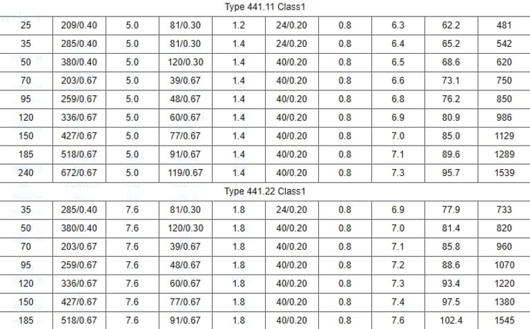 AS/NZS Tipe 441 (Kelas 1) 3,3 hingga 22 kV