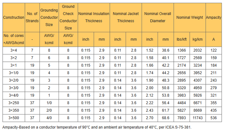 Kabel ini dirancang untuk menahan kondisi ekstrem di tambang. Spesifikasi utama meliputi: