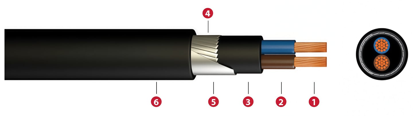 Konduktor / Isolasi / Lapisan pelindung / Armour / Sheath