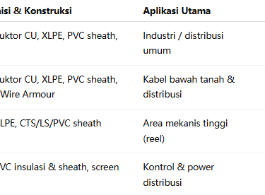 Lingkungan ekstrem → kabel harus memiliki ketahanan terhadap abrasi, benturan, dan kelembapan tinggi.