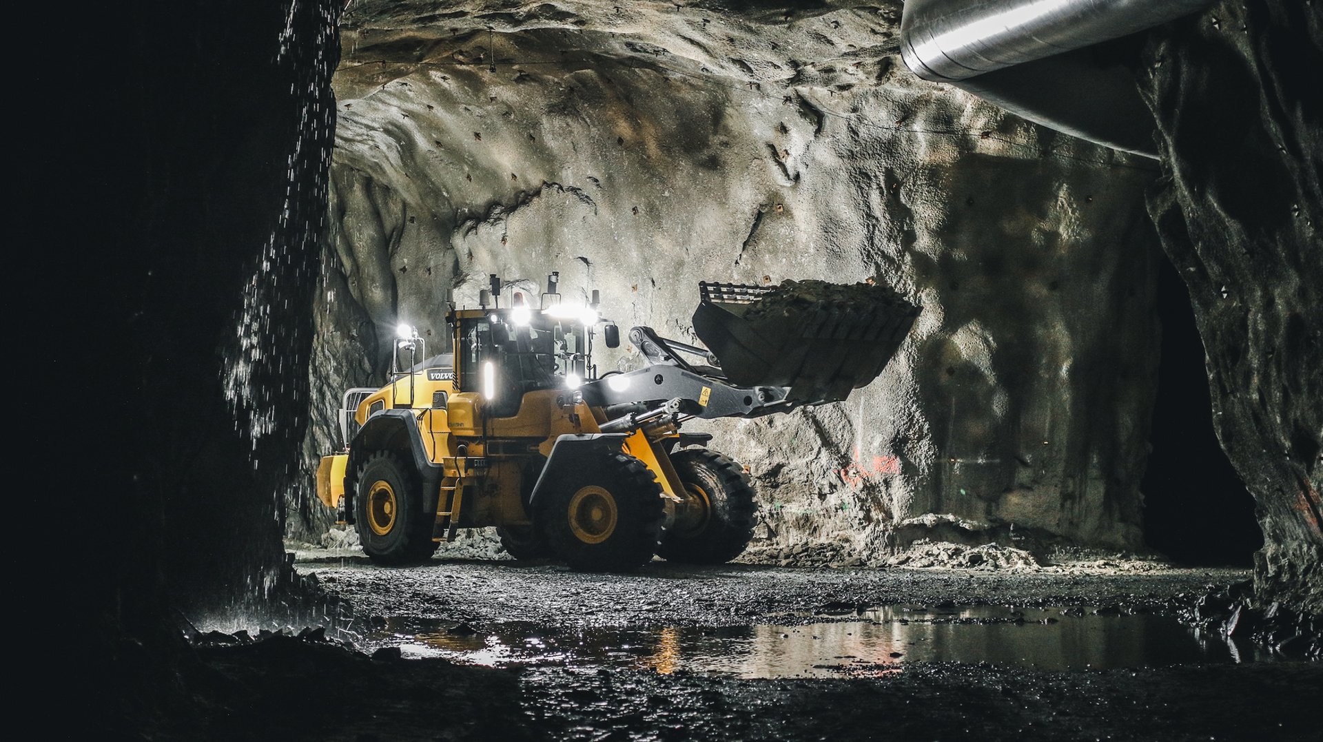 Kegelapan permanen: Tidak ada cahaya alami. Operator dan sistem autonomous (Sandvik AutoMine atau Caterpillar MineStar) bergantung pada lampu kendaraan saja.