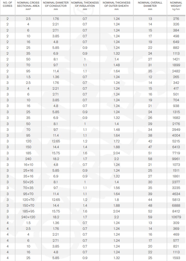 Voltage Rating (Uo/U) | 0.6/1 kV |