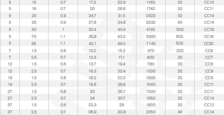 Minimum Bending Radius | 1.5–16 mm²: 6 × overall diameter |