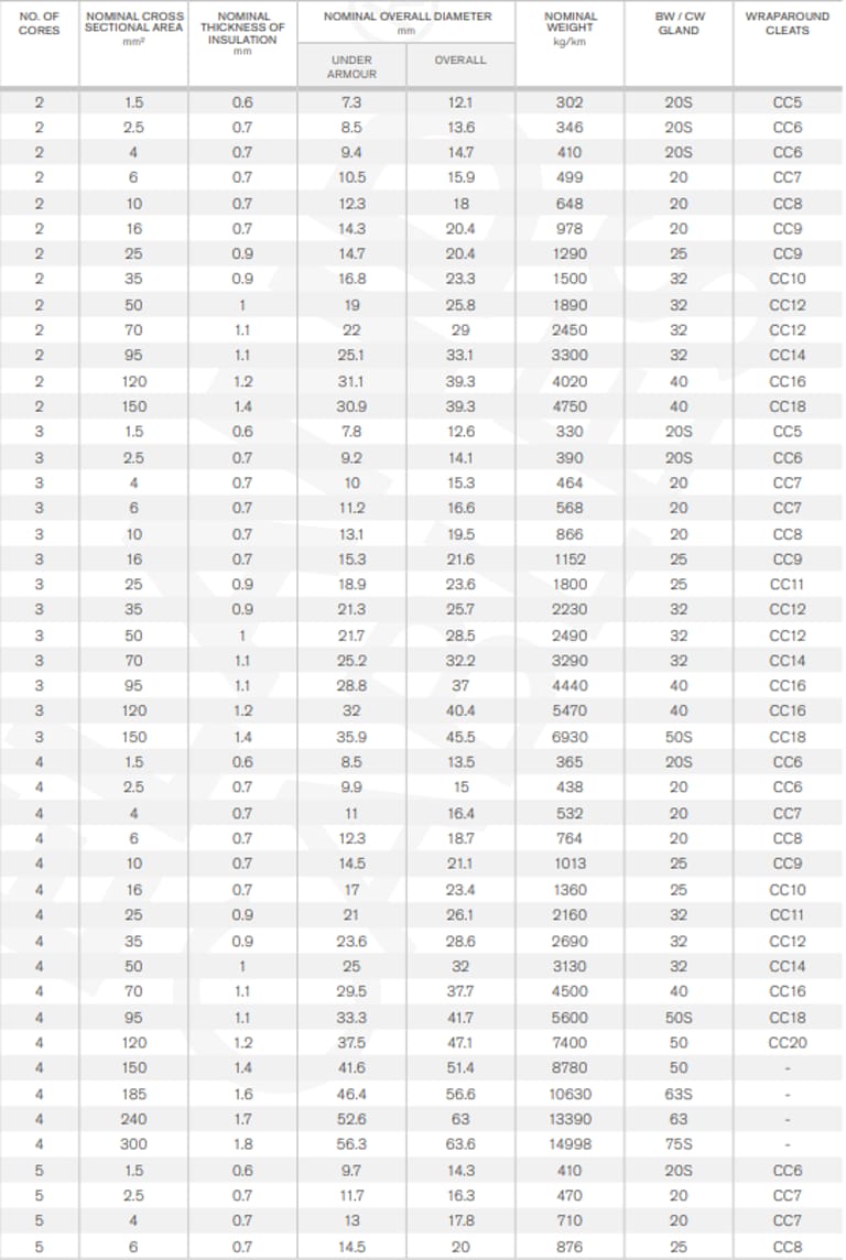 Mechanical Protection | Optional | Steel Wire Armour (SWA) |
