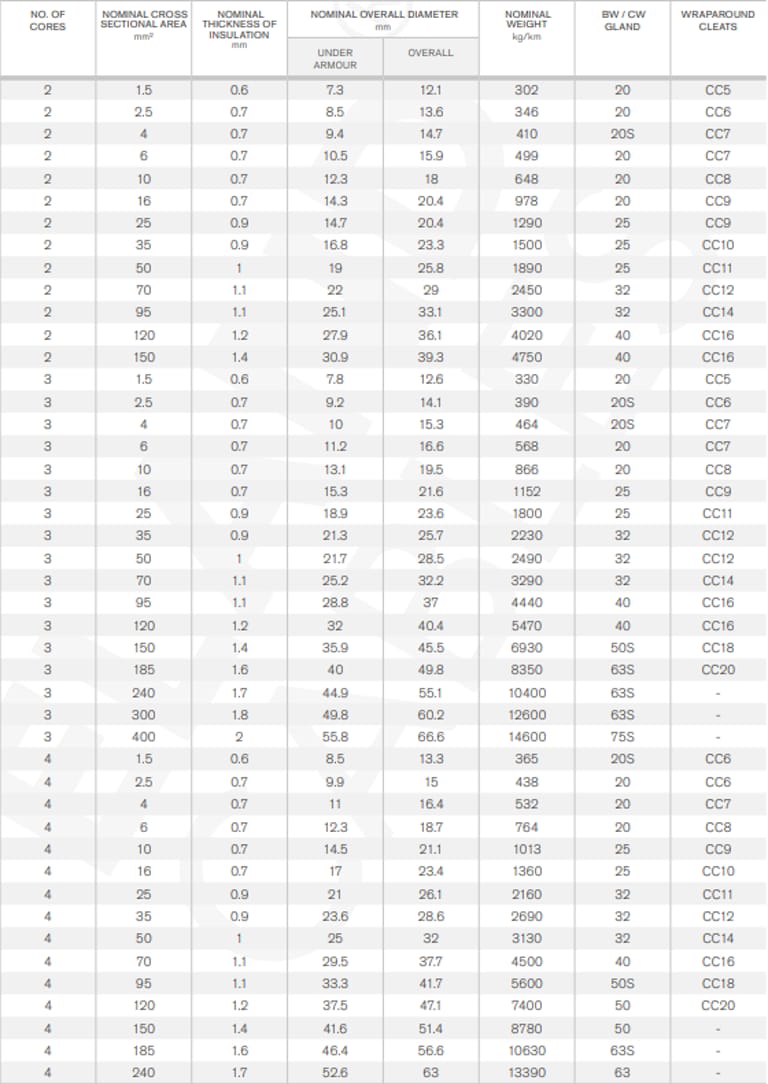 Application | European name of BS5467 cable. Multi-core PVC cable with steel wire armour (SWA). Power and auxiliary control cables for power networks, underground, outdoor and indoor applications, and cable ducting. |