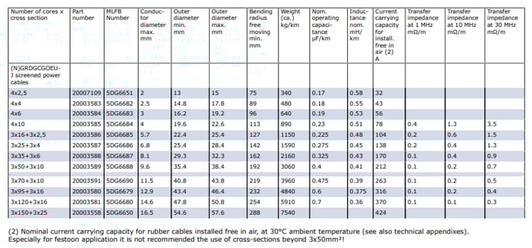 Kabel ini memiliki fleksibilitas tinggi, EMC rendah, dan kecepatan travel trolley hingga 240 m/min, sementara kabel biasa memiliki batas lebih rendah.