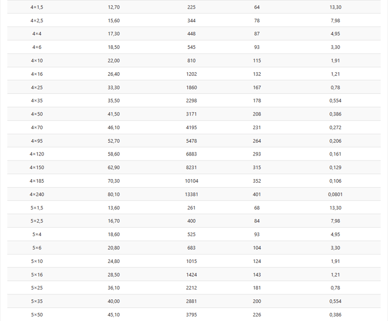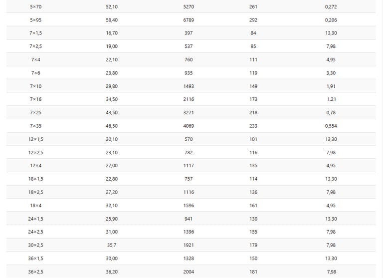 KAPASITAS ARUS: VDE 0298-4 Tab.11