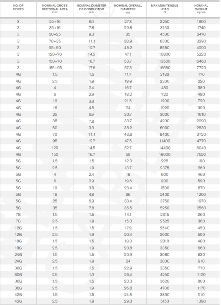 Konfigurasi inti tersedia dari 3 core hingga 42 core, termasuk versi O (tanpa PE hijau-kuning) dan J (dengan PE).