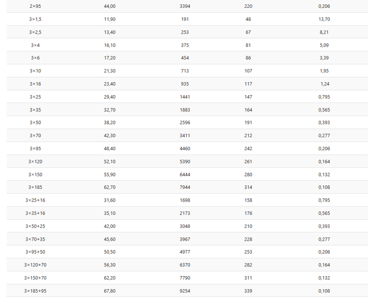 Misalnya, 3×25 mm² cocok untuk peralatan hingga 80A, sedangkan 3×70 mm² untuk hingga 200A.