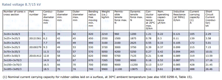 Kabel Reeling Tegangan Menengah (N)TSCGEWOEU – Contoh Tegangan Nominal & Data Teknis