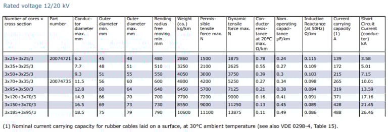 Kapasitas arus: Sesuai DIN VDE 0298 Bagian 4