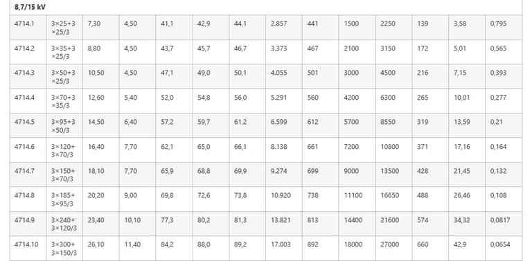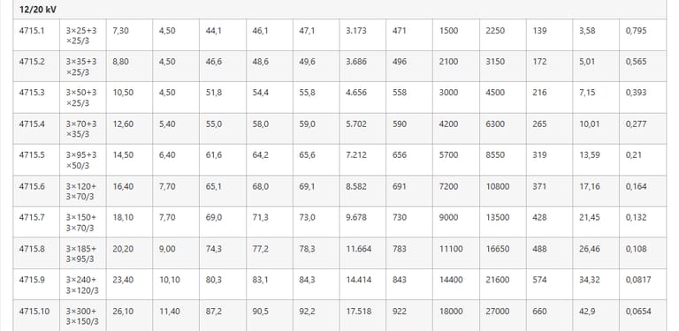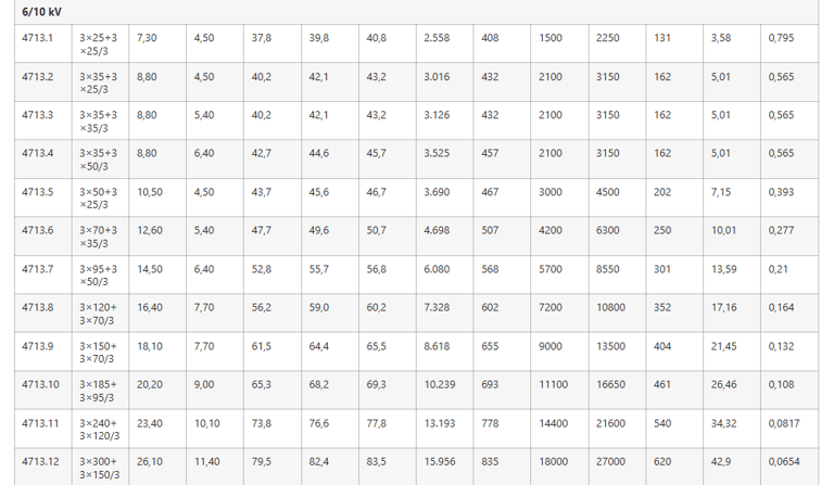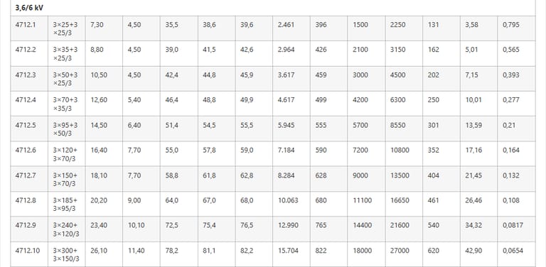Tegangan Nominal | 3,6/6 kV, 6/10 kV, 8,7/15 kV, 12/20 kV |