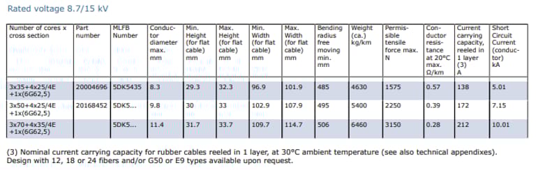 Kabel reeling tegangan menengah yang fleksibel untuk beban mekanis tinggi (misal: beban tarik dinamis, perubahan arah berulang dalam satu bidang, berjalan di atas rol). Utamanya digunakan untuk peralatan bergerak, seperti crane kontainer cepat, crane, peralatan bergerak besar, dan ekskavator.