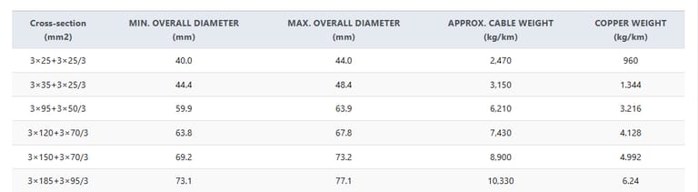 Ciri khasnya adalah konduktor tembaga timah fleksibel, isolasi 3Gl3, dan selubung luar elastomer heavy-duty 5GM5.