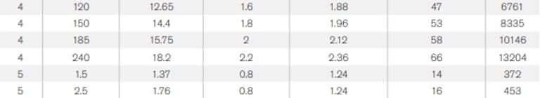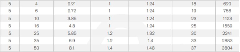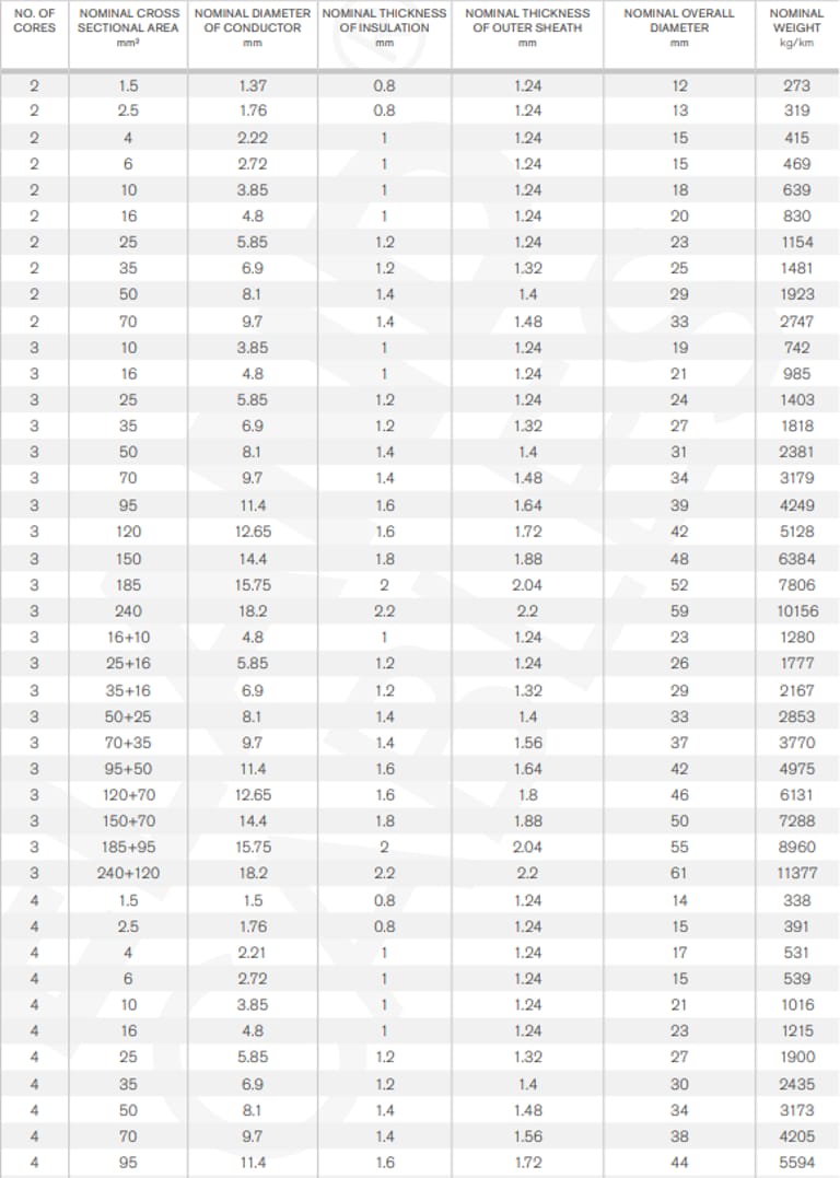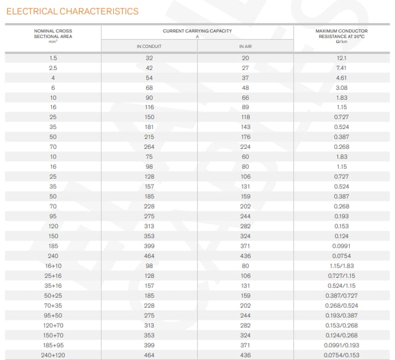 Availability in 2 to 5 cores, with a wide range of cross-sectional areas for variable current loads