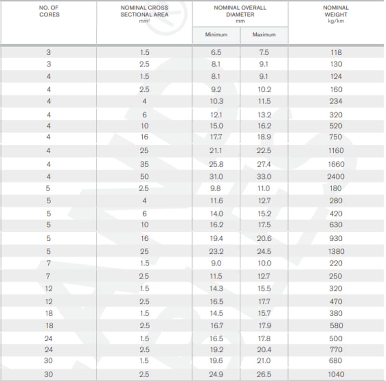Characteristics | Voltage Rating (Uo/U) | 0.6/1 kV |