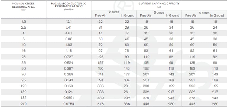 What Is the Maximum Current Capacity for a 4-Core 50mm² Cable?