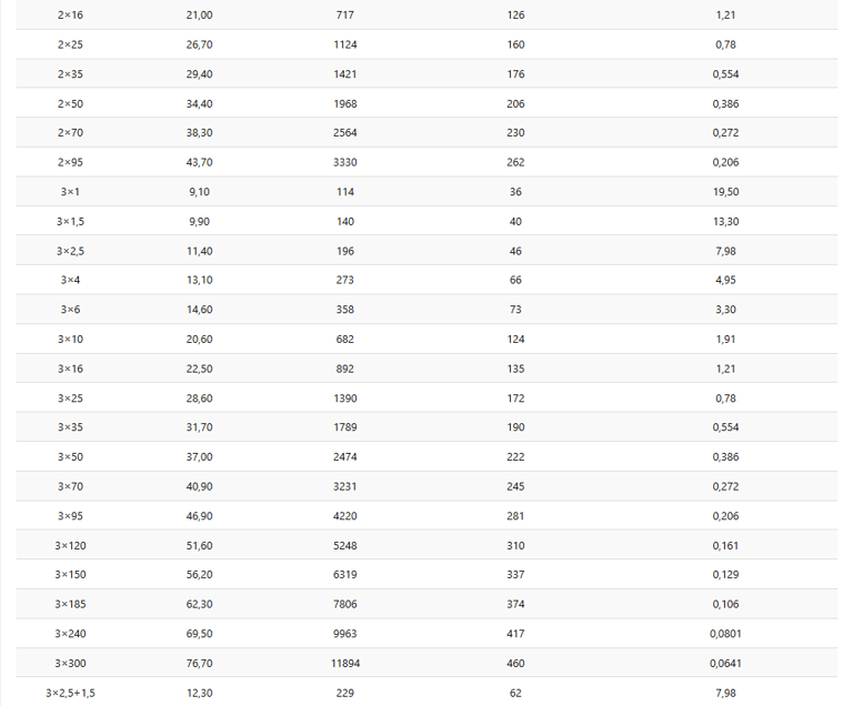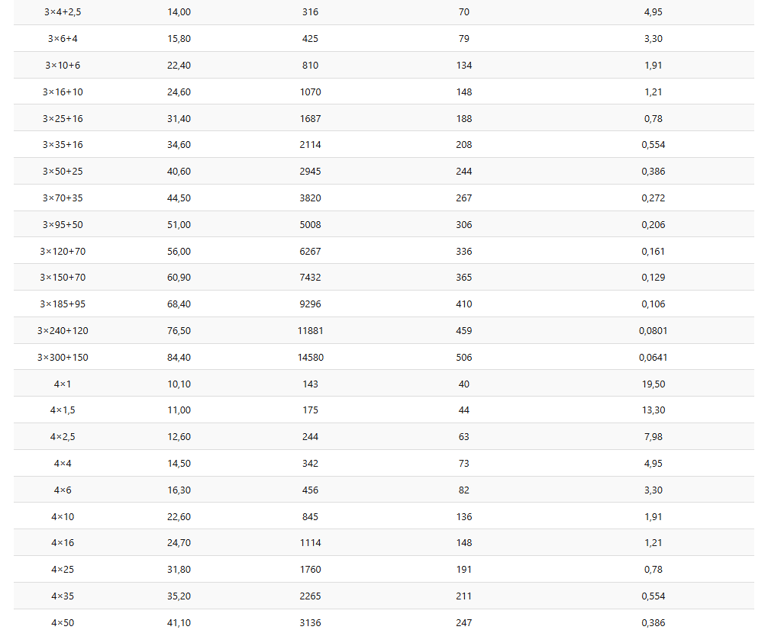 Kapasitas Arus: Mengacu VDE 0298-4 Tabel 13, IEC 60364-5-52 Tabel B.52.12 & C.52.1