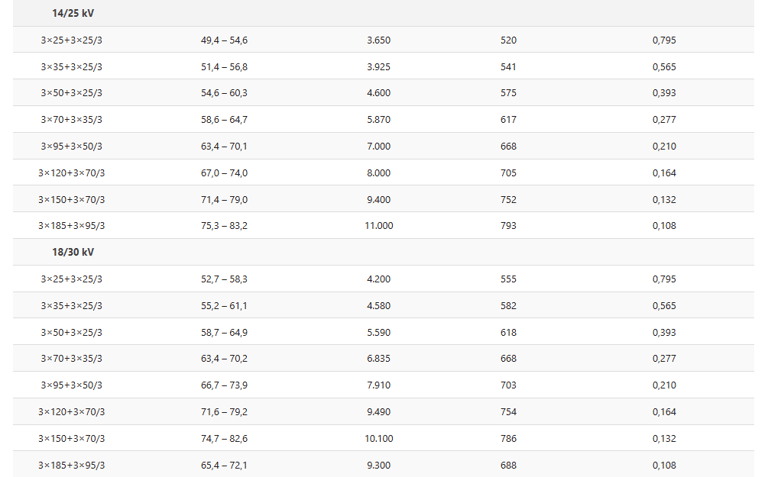 TEGANGAN NOMINAL: 3,6/6 kV | 6/10 kV | 8,7/15 kV | 12/20 kV | 18/30 kV | 20/35 kV