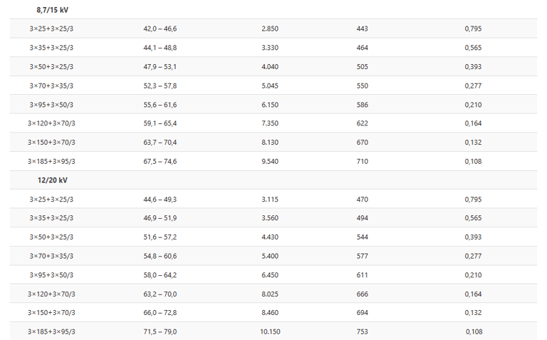 Kapasitas arus: VDE 0298-4 Tabel 15